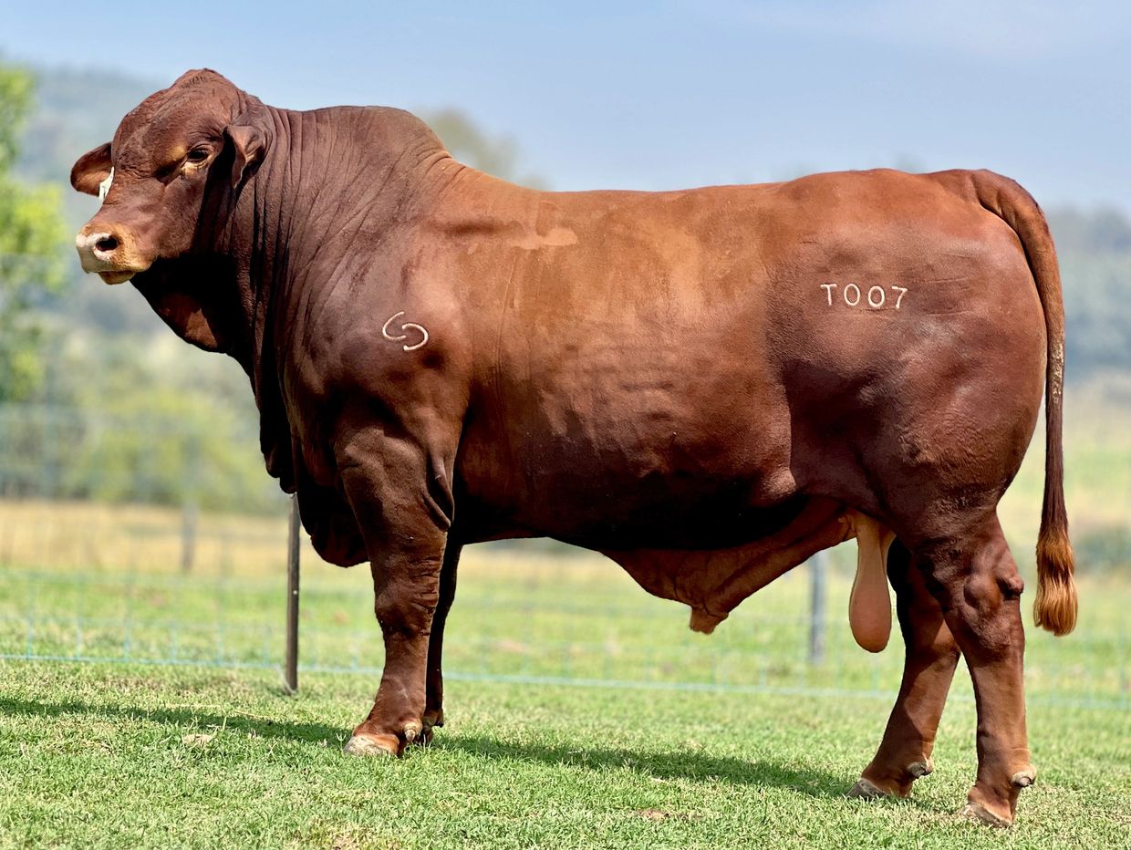 Red Maestro T007 is leading theChadwick Downs Red Brangus team and packs a punch! Huge growth and loads of style, talk to us about how Red Maestro can fit in your herd.