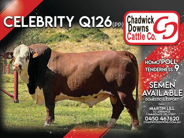 Celebrity Q126 has taken off on the international market; breeders are loving his body length, thickness and character. His first sons are at Chadwick are consistent, deep and stylish.